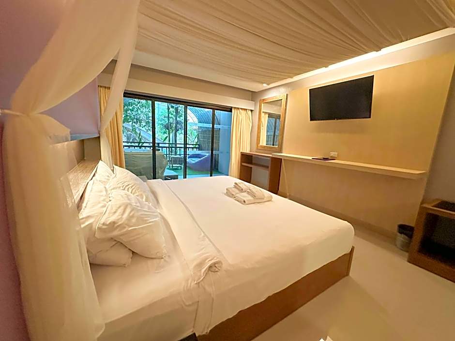 Large room features modern Thai-style decoration. It has a private balcony with pool view. Please note that online guests who stay from 10 Apr 2019 until 31 Oct 2019 are eligible for a complimentary one drink voucher upon arrival.