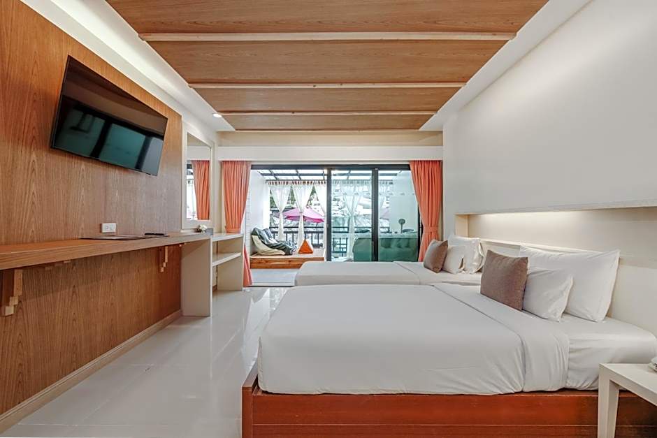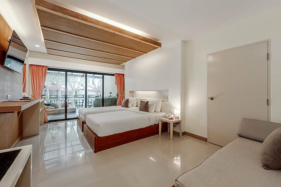 Large room features modern Thai-style decoration. It has a private balcony with pool view.